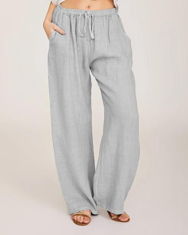 Solid Pocket Stretch Linen Loose Lounge Pants